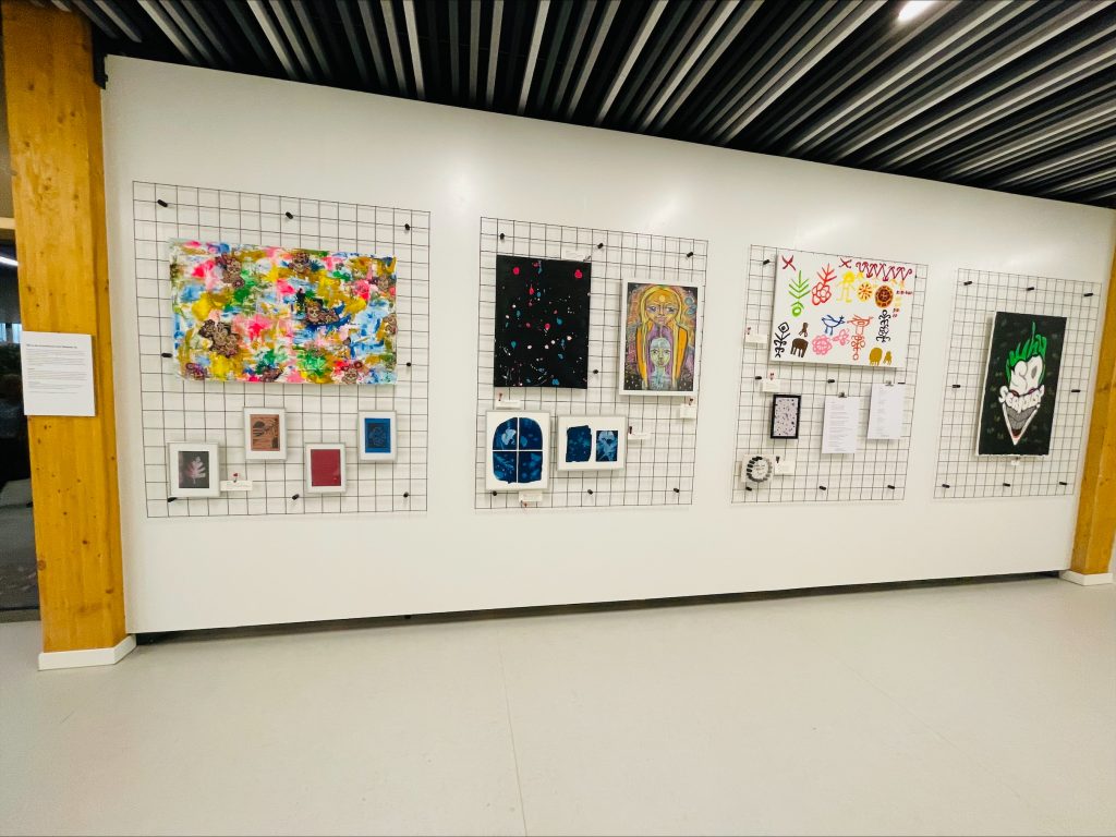 Aan de muur hangen werken van collega’s en mensen die verbonden zijn met Weener XL of het Participatiehuis. Deze muur is alleen toegankelijk voor medewerkers.