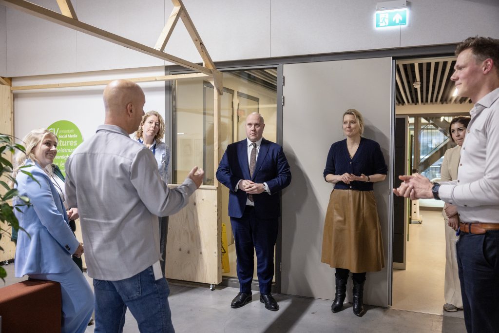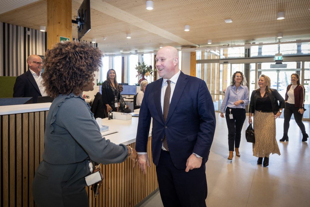 Wethouder Marianne van der Sloot en directeur Rudy Slegers ontvingen de minister. Tijdens het bezoek maakte hij uitgebreid kennis met de aanpak van Weener XL en ging in gesprek met medewerkers en professionals uit het sociaal domein.